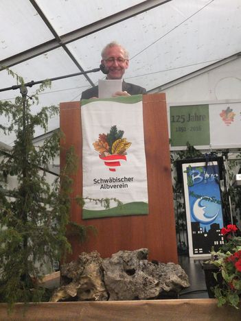 In diesem Jubiläumsjahr erhält der Weg in Zusammenarbeit mit der Stadt Münsingen eine neue Beschilderung. Schwerpunkte im Verein sind neben gemeinsamen Wanderungen auch Kinder- und Jugendarbeit, Landschaftspflege und Naturschutz. Welchen Stellenwert dieses Engagement in der Gesellschaft einnimmt, wurde in den Ausführungen des Landtagsabgeordneten Karl-Wilhelm Röhm und von Bürgermeister Mike Münzing deutlich. Der Verein sei „modern und in die Zukunft blickend“, eine „feste Burg durch Tradition und Verlässlichkeit“, so Münzing. Vieles sei auch zusammen mit Stadt und Landkreis entwickelt worden, so wie etwa die Ziegenbeweidung an den Wacholderheiden, die Pflege der Wanderwege oder gemeinsame Aktionen.