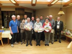 Die Bedeutsamkeit des Albvereins für Umwelt und Natur und das gesellschaftliche und soziale Leben betonte Stellv. Gauobmann Ulrich Holtz in seinem Grußwort. Sein besonderer Dank galt den Jubilaren für ihre Verdienste in der Ortsgruppe Gundelfingen und ihre langjährige Mitgliedschaft, zusammengenommen 525 Jahre. Für 25 Jahre Mitgliedschaft durften aus seiner Hand Paul Ziegler, Elisabeth Ziegler, Andreas Erzberger, Sonja Tress und Wolfgang Tress Urkunden und Ehrennadeln entgegennehmen. 8 Mitglieder halten bereits seit 50 Jahren dem Verein die Treue. Die Urkunden und Ehrennadeln dafür wurden an Inge Schöll, Anton Kley, Robert Knupfer, Paul Müller, Bernhard Geiselhart, Franz Kurz, Hermann Kurz und Josef Kopp verliehen. Vertrauensmann Paul Jörg und Verena König überreichten anschließend als Dank und Anerkennung kleine Geschenkkörbe.